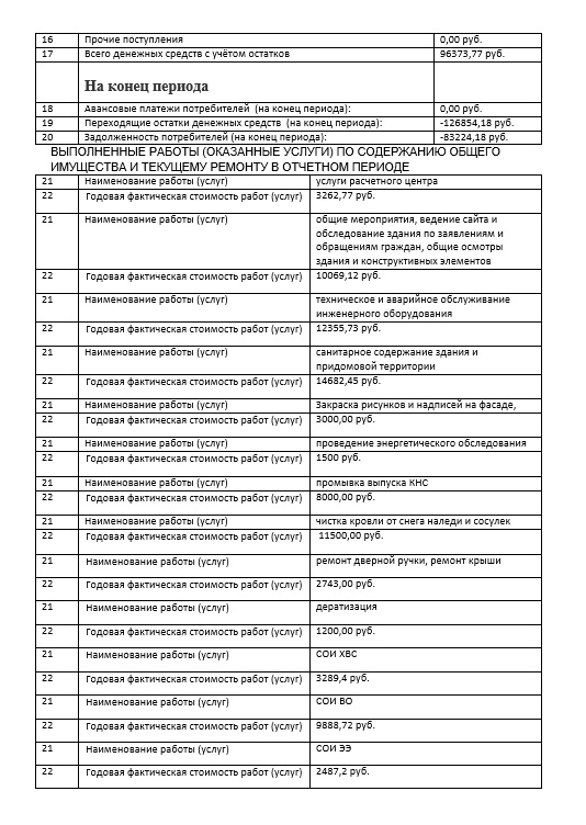 Форма 2.8 — Отчёт об исполнении управляющей организацией договора управления, а так же отчёт о выполнении товариществом, кооперативом смет доходов и расходов за год