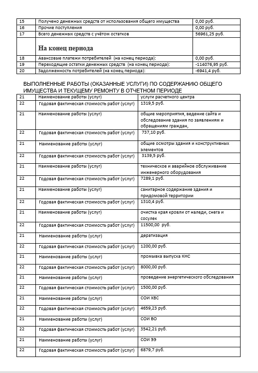 Форма 2.8 — Отчёт об исполнении управляющей организацией договора управления, а так же отчёт о выполнении товариществом, кооперативом смет доходов и расходов за год