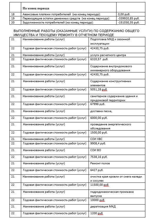 Форма 2.8 — Отчёт об исполнении управляющей организацией договора управления, а так же отчёт о выполнении товариществом, кооперативом смет доходов и расходов за год