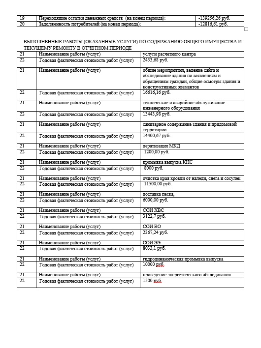 Форма 2.8 — Отчёт об исполнении управляющей организацией договора управления, а так же отчёт о выполнении товариществом, кооперативом смет доходов и расходов за год